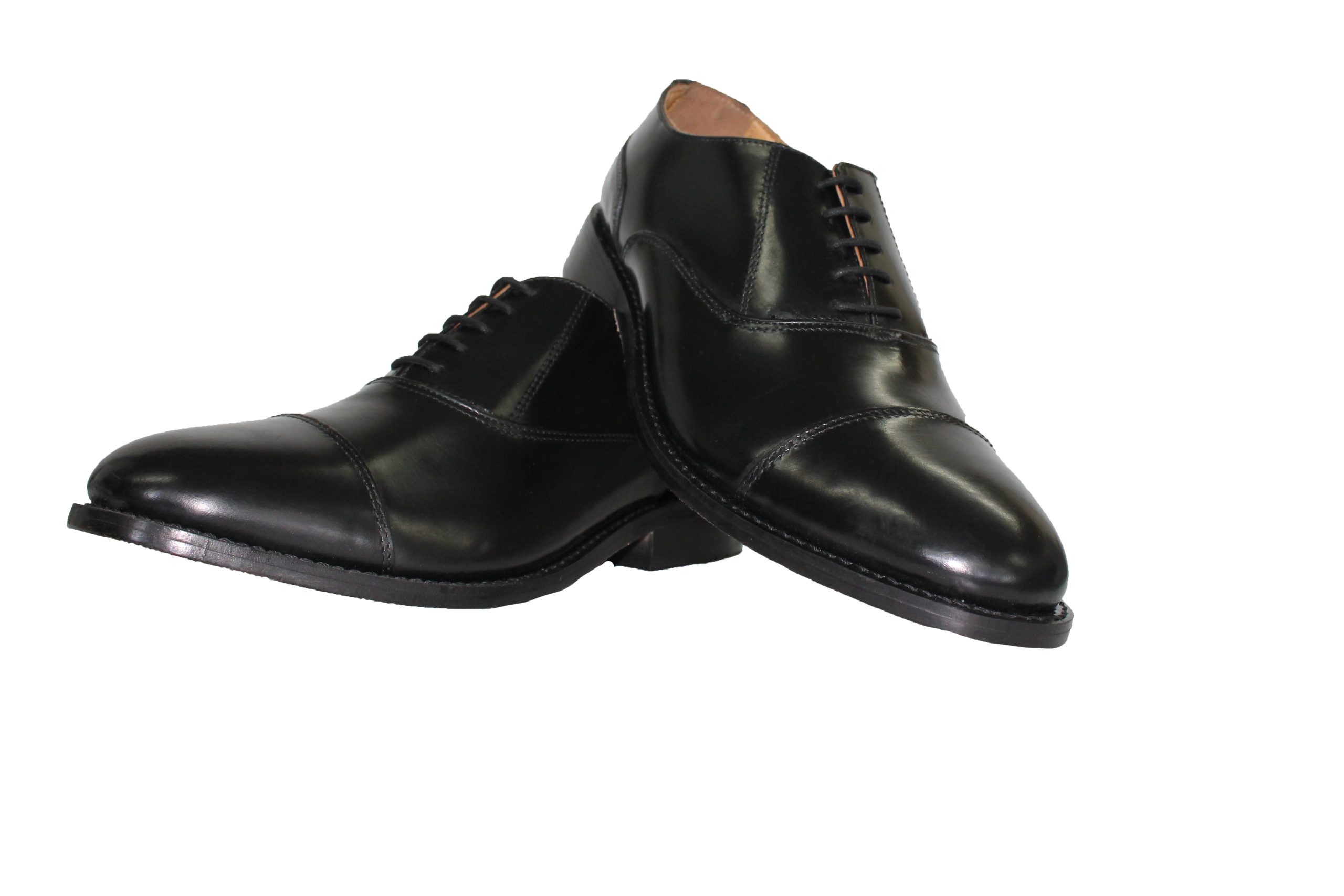 Black Kensignton All Leather Oxford Shoe With Toe Cap